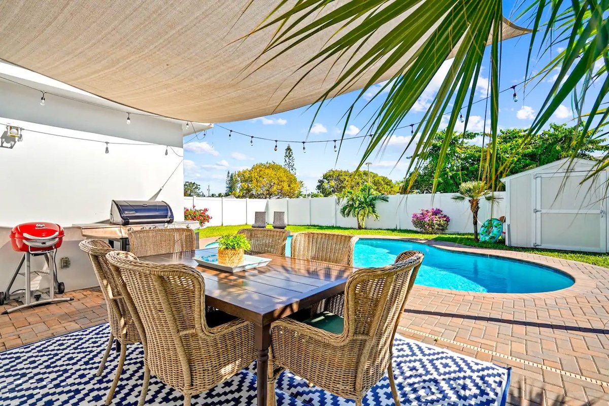 Brand new renovated 3 bedroom Pool house 1 min walk from Lake Osborne in Lake Worth and is 7 minutes from the beach and 10mins to downtown Delray. Perfect spot to relax after a long day with a nice Pool, BBQ grill and patio. Nice safe family neighborhood great for walks. Private backyard and Driveway parking with keyless entry. House has full kitchen, 3 large TV's, Air Fryer, bathroom showers, dining room, Family, living area, two king beds, and one Queen sofa bed and one twin sofa bed (4 beds).