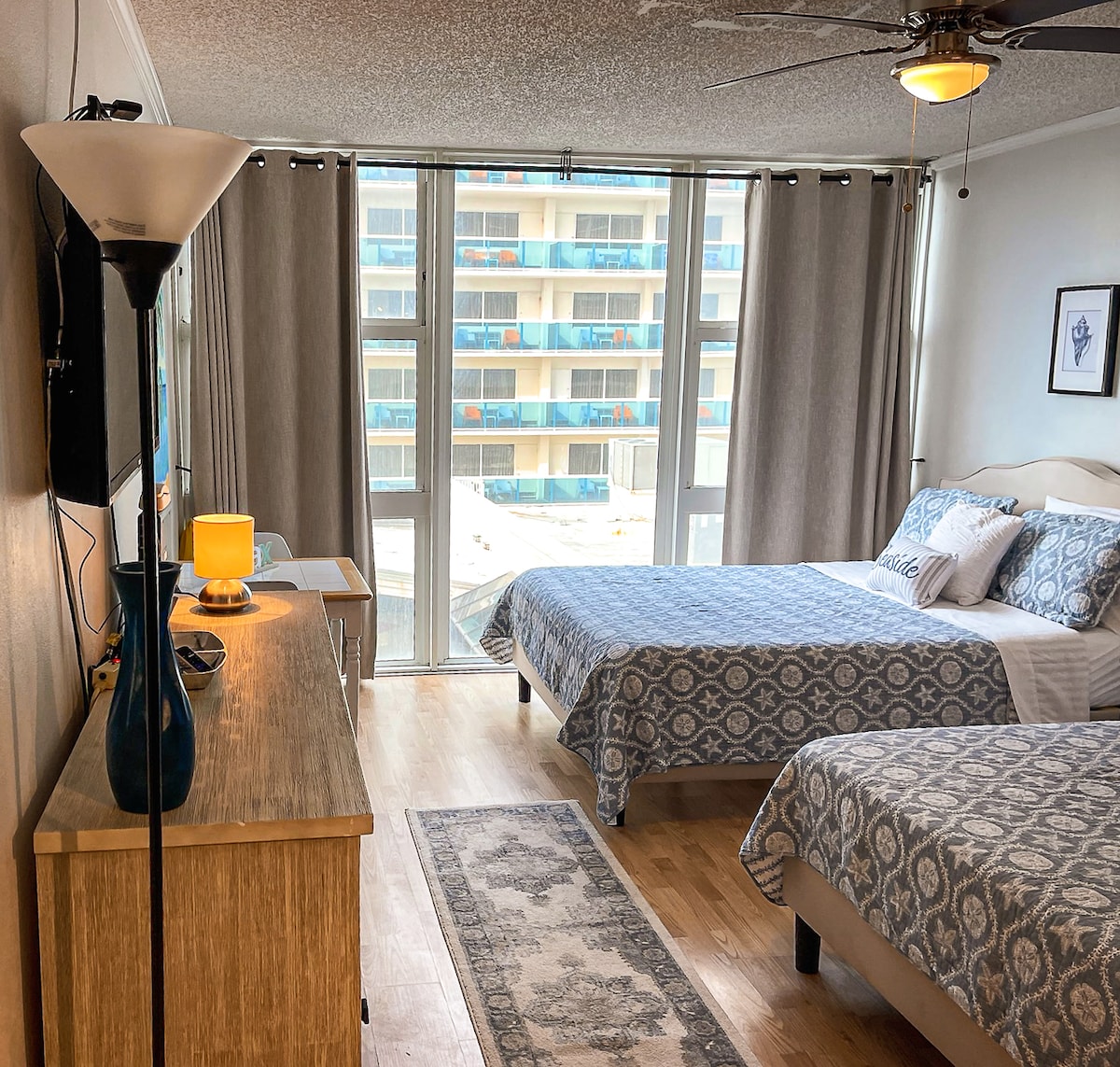 Beautiful ocean view from the unit , right on the beach ,great location near restaurants, shops, supermarket and many other attractions, you will love to just walk down two floors and be right on the beach, great for your holidays or work time . Unit can host 2 adults and 2 kids or 3 adults if they are comfortable with a queen bed and a sofa bed