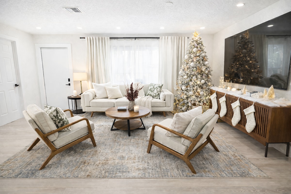 Mermaids’ Cove offers the perfect blend of sun, salt, and laid-back fun. Just 1 mile from the beach, close enough for an easy bike ride. Think sandy feet, rolling waves, glowing sunsets, and warm nights. Back home, your private palm-lined backyard lets the world slow down: float in the heated pool, soak in the hot tub or gather around the firepit for stories and drinks ay sunset. The Florida Room is made for downtime, with a TV, fridge bar, and pool table. Bikes and kayaks for fun outings