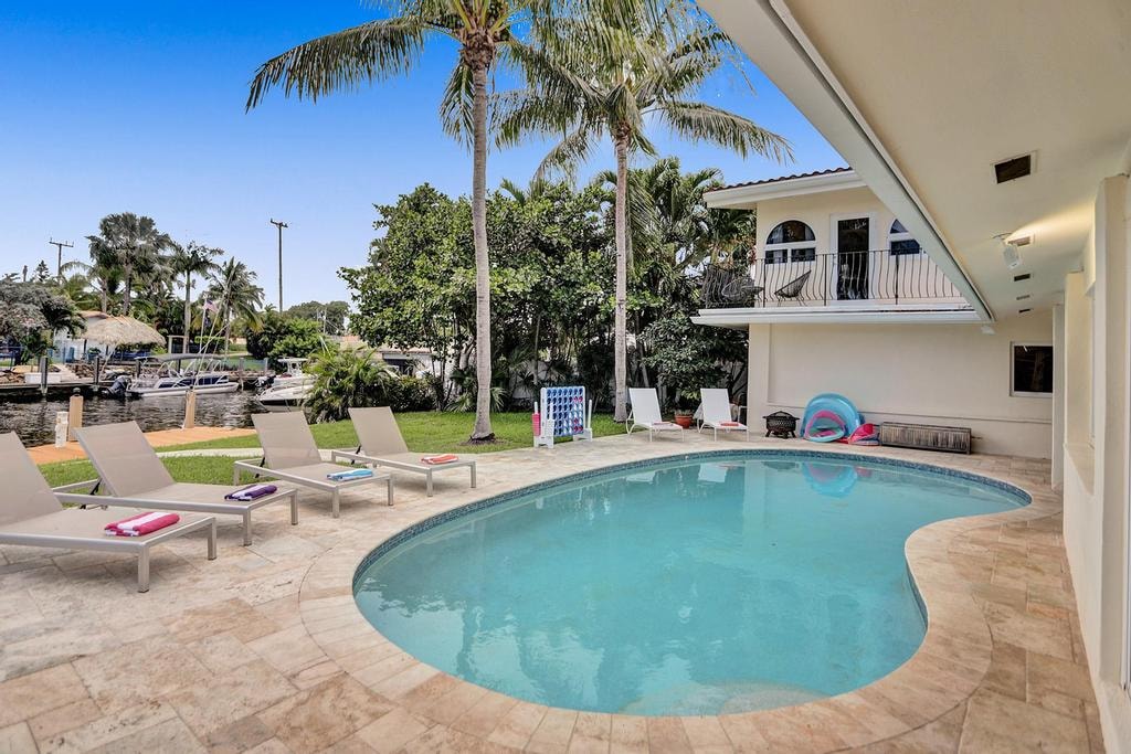 This beautifully remodeled home consists of 3 queen bedrooms with 2 full baths, playroom/office, and open floor plan with new kitchen & bar. Incredible outdoor space with custom tiki bar, grill, & fire pit! Sleeps up to 8 people with 3 queen beds, daybed in the office, & one luxury air mattress. This updated home is located in the desirable neighborhood of Chapel Hill. Minutes to downtown & famed Atlantic Ave, shopping, dining & Delray Beach. Close to highway 95 & convenient to 3 Major Airports.