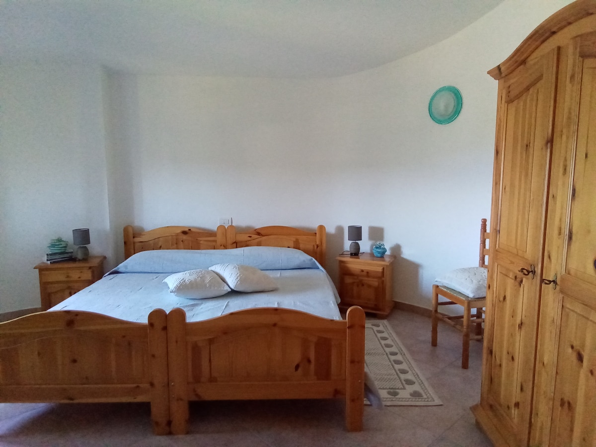 La camera si trova al piano primo, dove sono presenti altre due stanze (una per gli ospiti e la nostra), ed è dotata di una Smart TV da 40" (alla quale potrai collegare il tuo smartphone per vedere i contenuti che preferisci su YouTube o Netflix) e aria condizionata. A disposizione c'è un letto matrimoniale, oppure, previa richiesta anticipata, è possibile avere due letti singoli. Il bagno è luminoso e spazioso e la doccia è larga e confortevole. L'acqua calda è garantita da uno scaldino a gas e la pressione è buona e garantisce una doccia super!!