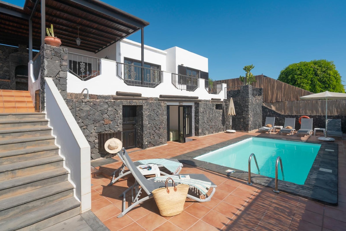 Villa de lujo muy acogedora y bien ubicada, lejos del ruido y cerca de la Playa Grande. Si busca pasarlo bien, con la piscina climatizada, BBQ con parrilla argentina, música, televisión multicanal y libros en la zona lectura. Niños hasta 4 años gratis y con posibilidad de cama-cuna Lugares de interés: playas, paisajes volcánicos, vino, paseos entre volcanes, deporte de todas clases sobre todo windsurf-Kitesurf-surf-vela. Mi alojamiento es muy bueno para parejas, aventureros, y familias ...
