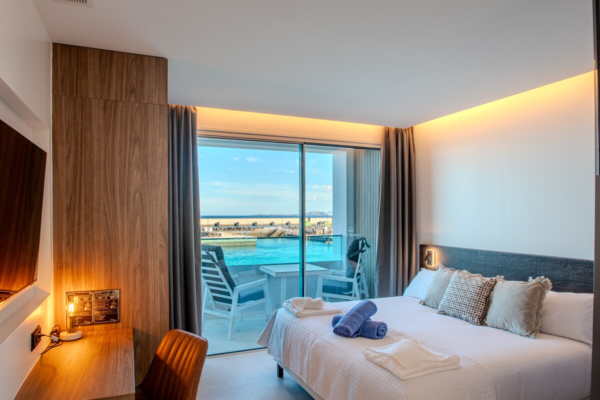 Habitación en suite situada en primera línea del paseo marítimo de Playa Blanca, (Isla de Lanzarote, Islas Canarias). Diseño moderno, con mucha iluminación y amplitud; Se distribuye en un espacio totalmente diáfano que incluye: Vestidor, baño completo, pequeño office con: nevera, congelador y horno/microondas, escritorio, terraza con vistas al mar y a nuestra isla vecina (Fuerteventura) . Cuenta con aire acondicionado/ calefacción, WiFi gratuito, caja fuerte, y smart TV.