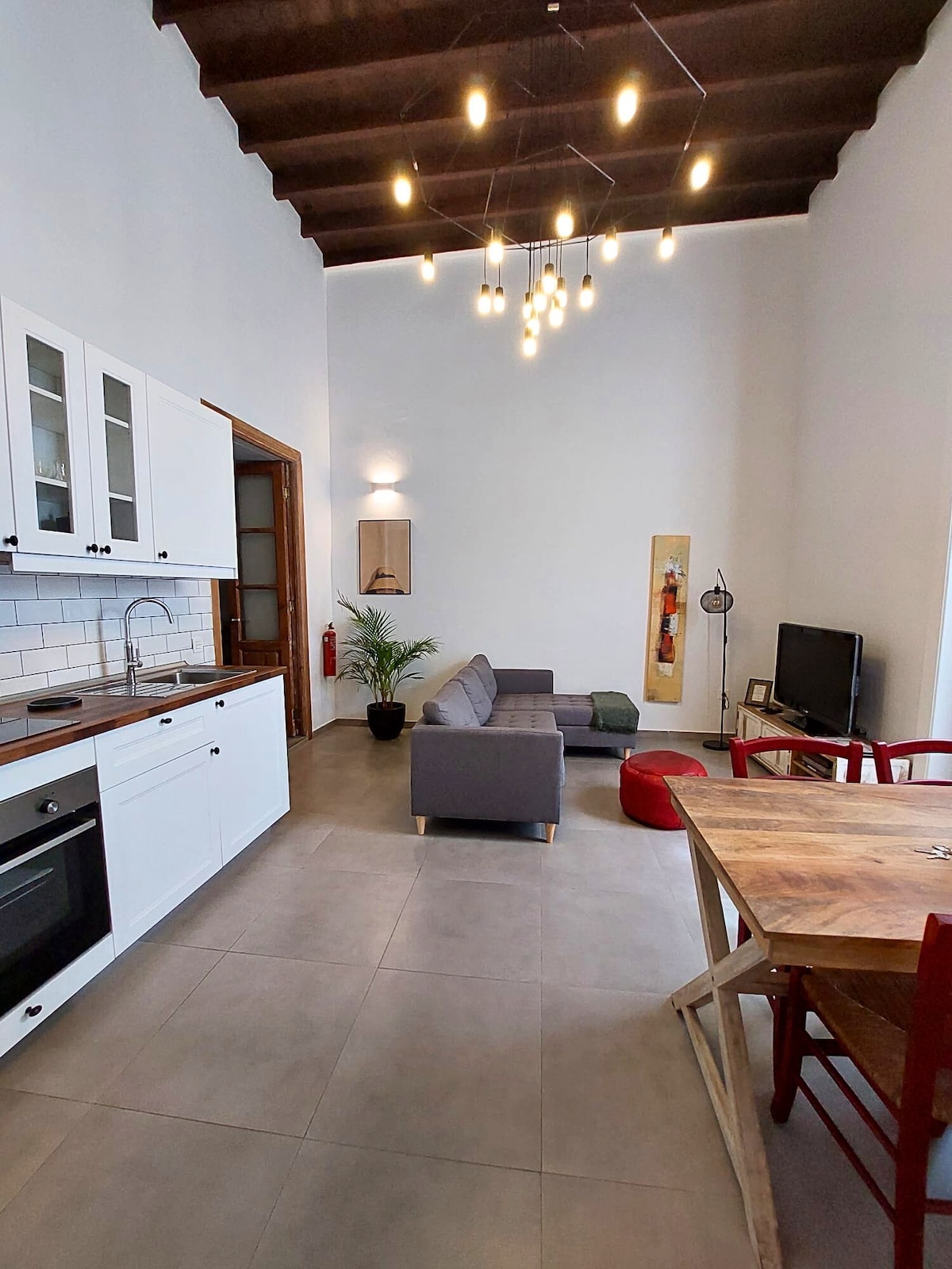 En Casa Lela podrás disfrutar de un apartamento con aires vintage pero con las comodidades actuales: TV, internet y aire acondicionado. En la primera estancia encontrarás la sala de estar, cocina equipada con micro, horno y vitro y zona de comedor. El baño independiente con plato de ducha, cuenta con armario y cajonera, en el altillo dispones de un romántico dormitorio al que accedes por unas escaleras de madera. Construida hace un siglo y reformada en 2021 con amor. Disfruta la estancia.