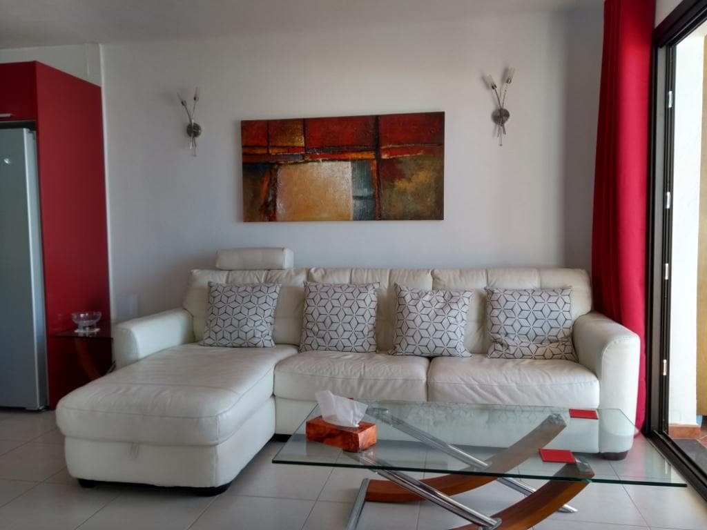 Nuevo apartamento en Puerto del Carmen, ubicado en un complejo muy tranquilo con piscina comunitaria con vistas al mar. Lo mejor de este apartamento es su terraza, dispone de cama redonda para tomar el sol, parrilla exterior para cocinar y una gran mesa para comer o trabajar con vistas al mar. En el interior dispone de salón con smart TV internacional, sofá muy confortable y una pequeña mesa de desayunos. La cocina está totalmente equipada: horno, microondas, frigorífico, sartenes y menaje.