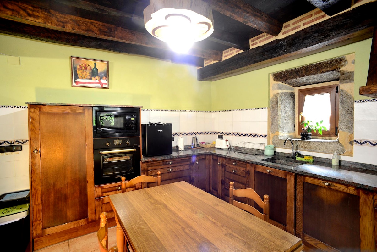 Rural Cottage made of Stone and slate roof, original from the area with unparalleled location and views, it has a private oak and chestnut´s forest with its own picnic table and an extensive farm to walk in an incomparable environment, 2 floors, 3 rooms one of them with sofa and tv, Barbecue - Outdoor fireplace, Water well, covered porch, Terrace - balcony, Viewpoint - stone terrace suspended on the hillside with stunning views of the valley and the mountains, as well as the whole house.