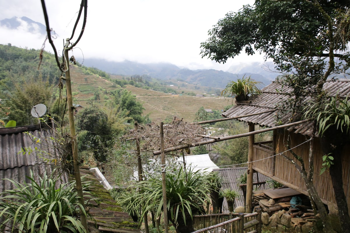 Come and spend time with me and my Hmong family at my newly renovated homestay, with stunning views of the mountains and rice terraces in Ta Van village, Sapa. This listing INCLUDES: a private bungalow (with ensuite bathroom) that can accommodate 2 adults comfortably; breakfast and dinner (home-cooked family style). We also have shared dorm (8 single beds) and 3 private rooms (each has a double bed).