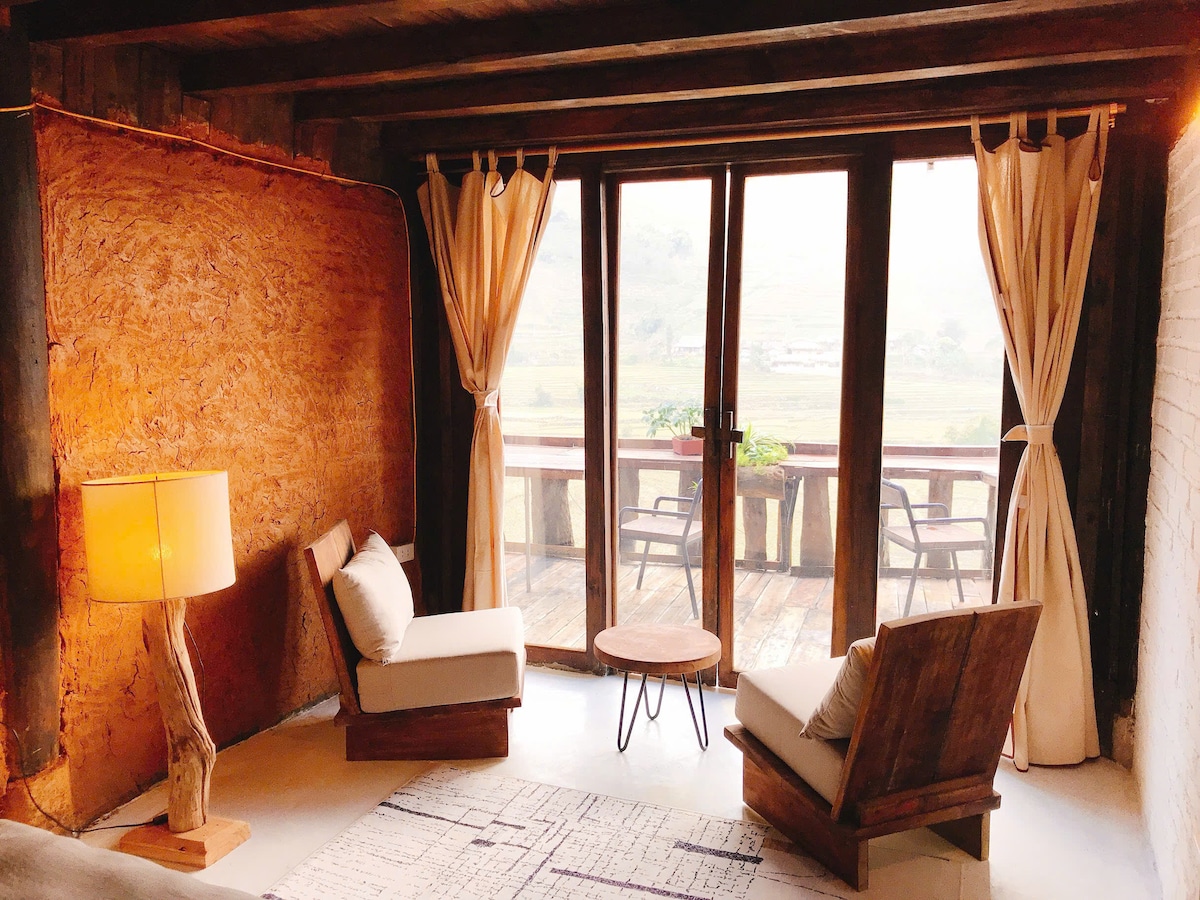Welcome to our charming bungalow, where you can wake up to one of the most stunning views of terraced rice fields in Sapa. With large glass windows, our cozy room offers an uninterrupted panorama, allowing you to immerse yourself in the beauty of nature. The serene sunrise from your bed will make your stay truly unforgettable. Come and experience the perfect blend of comfort and breathtaking scenery at our hillside retreat!