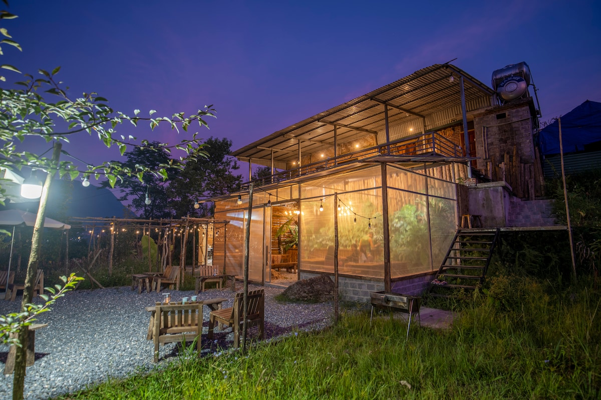 Experience the true spirit of Sapa, just 10km from the town center — peaceful and surrounded by mountains. • Fully equipped kitchen with fridge & utensils – perfect for long stays • Stay cozy in winter with a fireplace, electric heater, and heated mattress • Large glass doors in bedroom & living room offer stunning mountain views • Spacious bathroom with hot water and heating system for your comfort