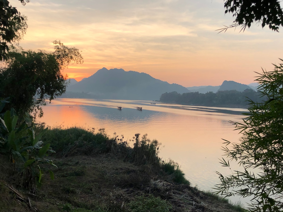 We are boutique hotel with 8 Mekong River view rooms just 12 Km to world heritage site Wat Phu by Tuk Tuk 25 minutes. Our view from room location on bank of Mighty Mekong. You will see sunrise at morning from your terrace. On side restaurant Lao and Thai cuisine.