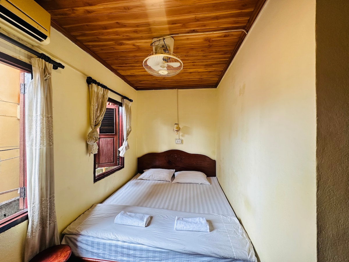 Our guesthouse boasts an unbeatable location with serene rooms in a quiet courtyard, away from the main road. The monk alms parade passes in front, while restaurants, travel agencies, spas, and a herbal sauna are next door. Major attractions like the Royal Palace, Phousi Mountain, and the Night Market are within walking distance. Enjoy easy access to ferries, convenience stores, and safe parking for bikes. A peaceful stay with everything at your fingertips!