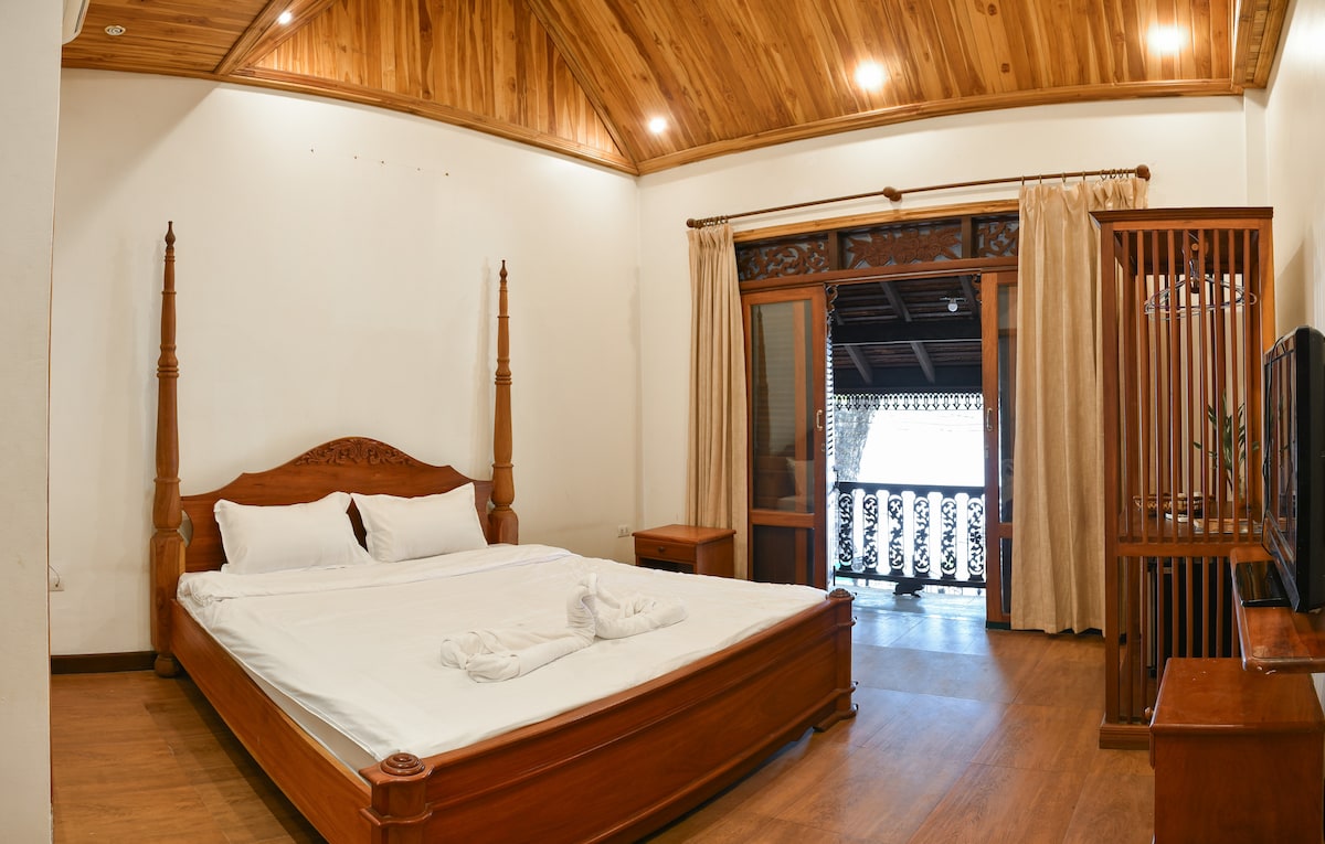 Welcome to Riverside Villa Phone Sa Ath, your ultimate private vacation retreat that caters to the needs of discerning travelers seeking an exclusive and relaxing experience. Nestled along the serene Nam Khan River, surrounded by lush woods and a spacious yard, our villa offers a tranquil oasis where you can immerse yourself in the soothing sounds of nature. Plus, with its convenient location, you'll only be a short 10-minute drive away from the airport.