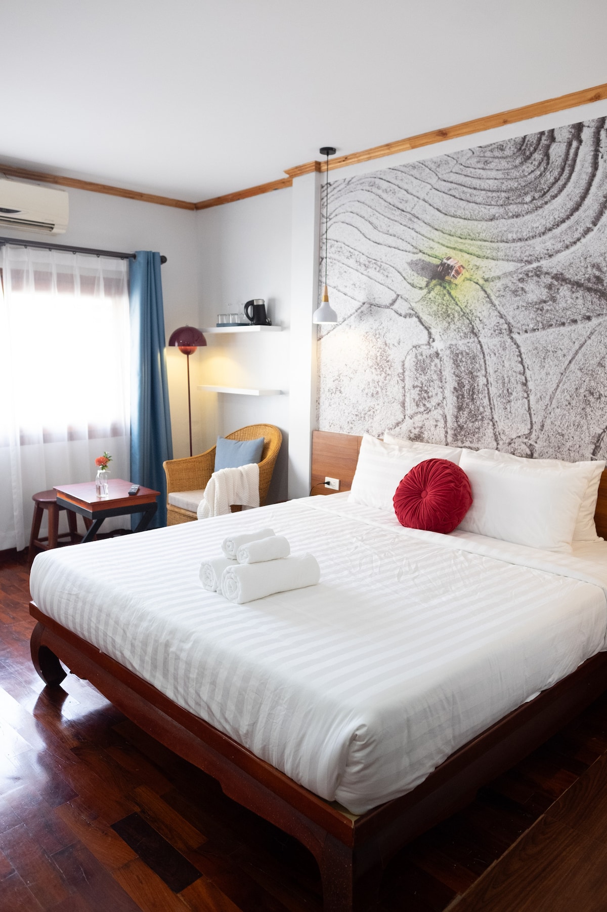 Stay in our unique triangular wooden bungalow located right on the Nam Ou River. Enjoy beautiful river and mountain views, stunning sunsets, full facilities, and warm service. Our on-site restaurant and convenient location make your stay easy and relaxing.