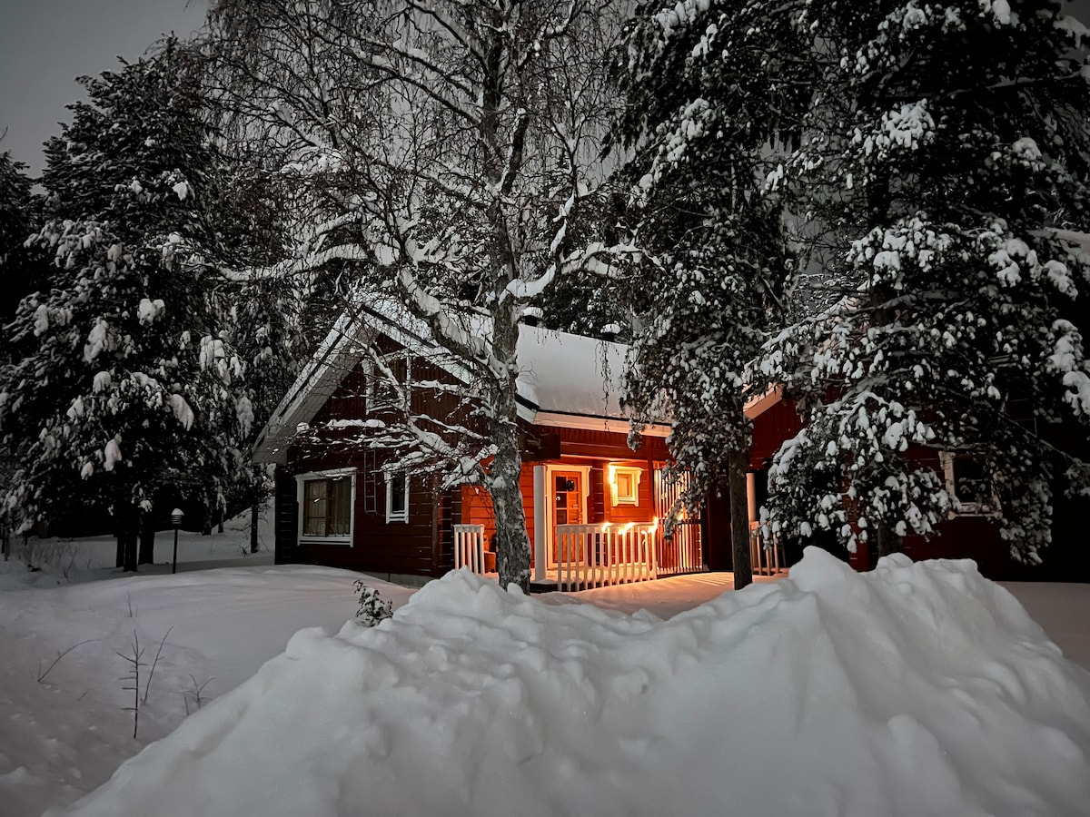 Our wooden cottage is located in idyllic residential neighbourhood. It is 2,5 km from downtown! Easy to access! It is a charming high-quality cabin for 3. Kitchen and large bathroom with sauna. Relaxing and peaceful residential. Laplands university and supermarket is within a 500 meter. Two kicking sledges free for use. The longest river Kemijoki is only 50 m away. Our family lives on the other side of the garden so you can enjoy genuine Finnish lifestyle here. We wish you warmly welcome!