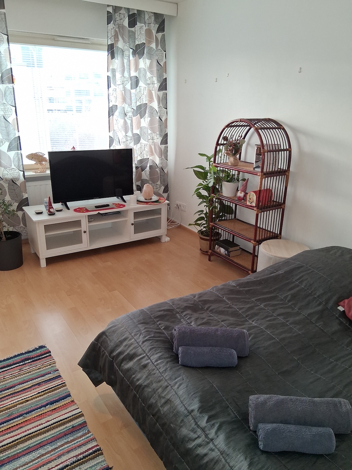 Cozy room with bathroom, kitchenette and French balcony near city center. 140cm wide bed. Bed sheets, towels, and cooking utensils. TV. Microwave, washing machine. In a cellar there’s drying room. Supermarket, bus station, and train station within walking distance. There's a free parking along Karhunkaatajantie. You can also park to the in yard for 3 hours with a parking disc. I will send you instructions for self check in once you have booked. Enjoy Lapland!!