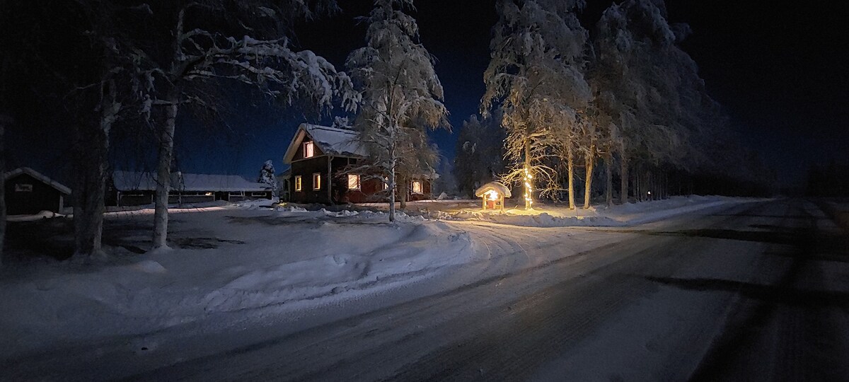 Entire upstairs with separate entry (Check out our other listings in case you need just a room á 74€ upwards) At your use the entire upstairs with five bedrooms in our homestead in the middle of the Lapland wilderness. Also the gym & the Kota (w/bbq facilities) are available to our guests. The Kotasauna and the hot & cold tubs as well as the Loghouse available with separate order. Especially suitable for large groups and festivities. We have more room downstairs at request if needed.