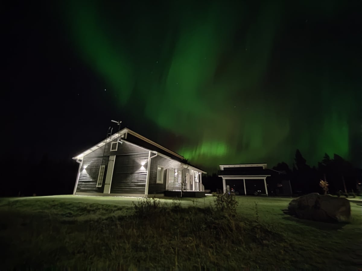 The cabin is located 30 km from the city center of Rovaniemi on the river side of the Kemijoki. Our cabin accommodates six guests and features: - 2x sauna - A fully equipped kitchen - Coffee, tea, hot chocolate, salt, pepper, and olive oil provided - A washing machine and dryer - Electric sauna inside of the house is free to use. The cabin is 30-minute drive from the airport. Thid is a great and peacefull place to spot auroras. Note that the hot tub is available only from May to September