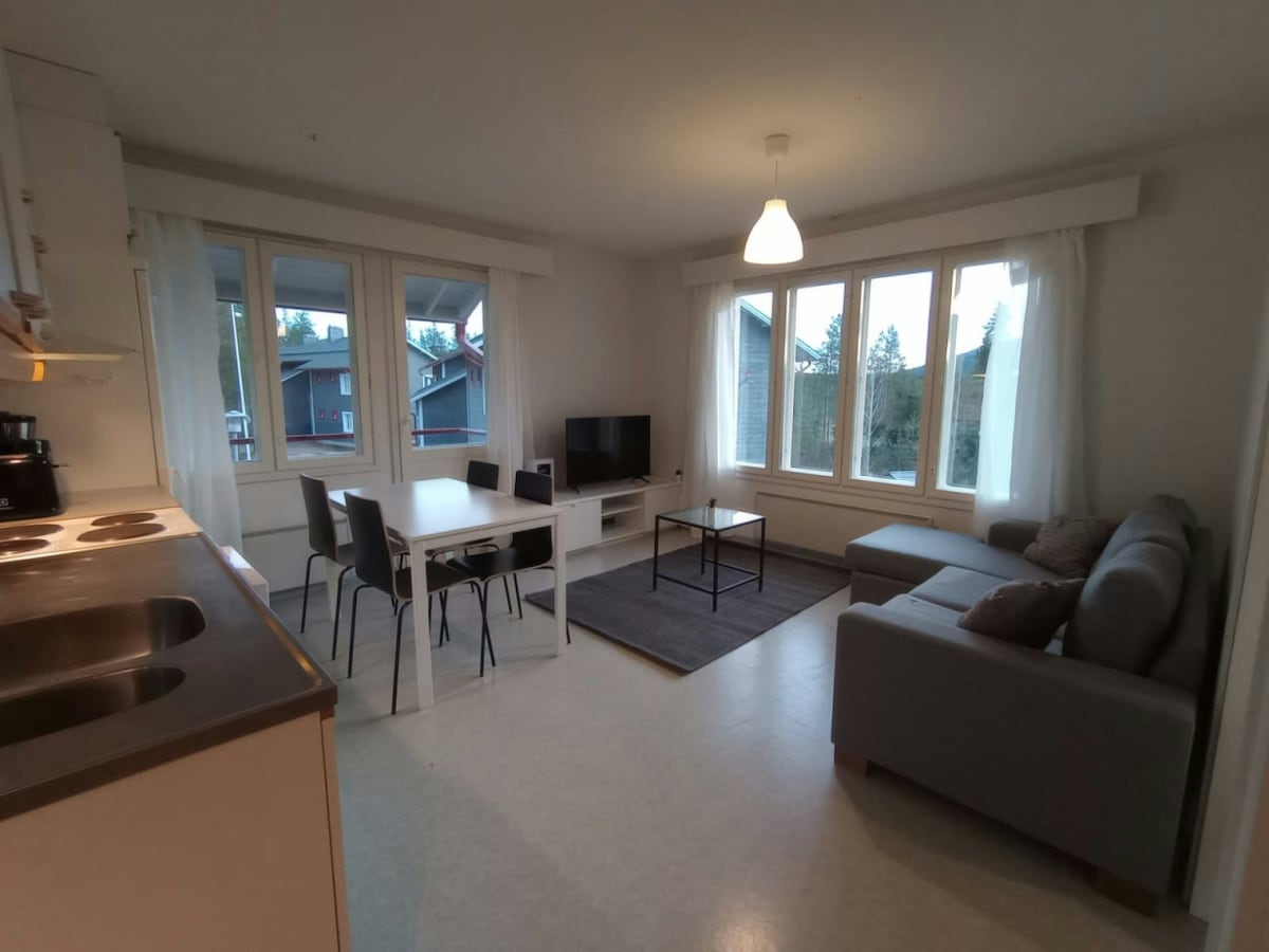 Welcome to our cozy 2-bedroom apartment in Levi, located on the second floor of a charming building. Ideal for up to 4 guests, it features a fully equipped kitchen, relaxing sauna, and modern amenities. Perfect for families, friends, or solo travelers. Parking available upon booking. Explore Levi's stunning nature and outdoor activities.