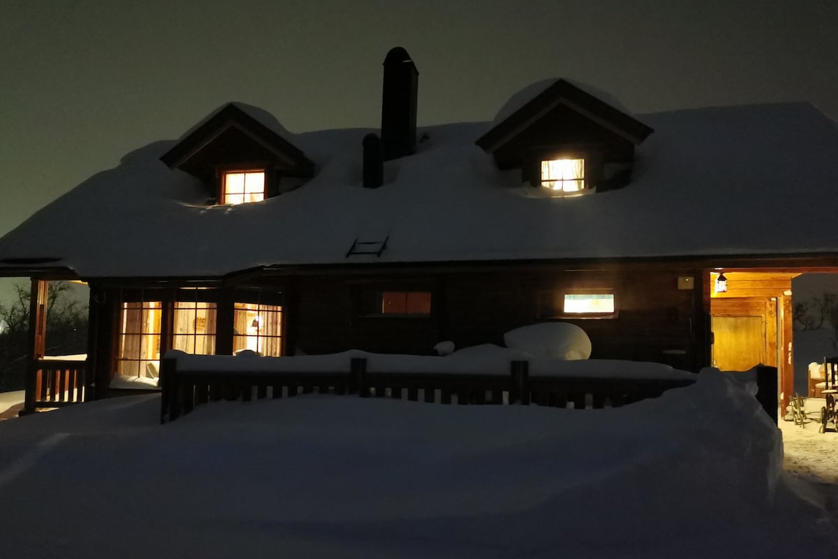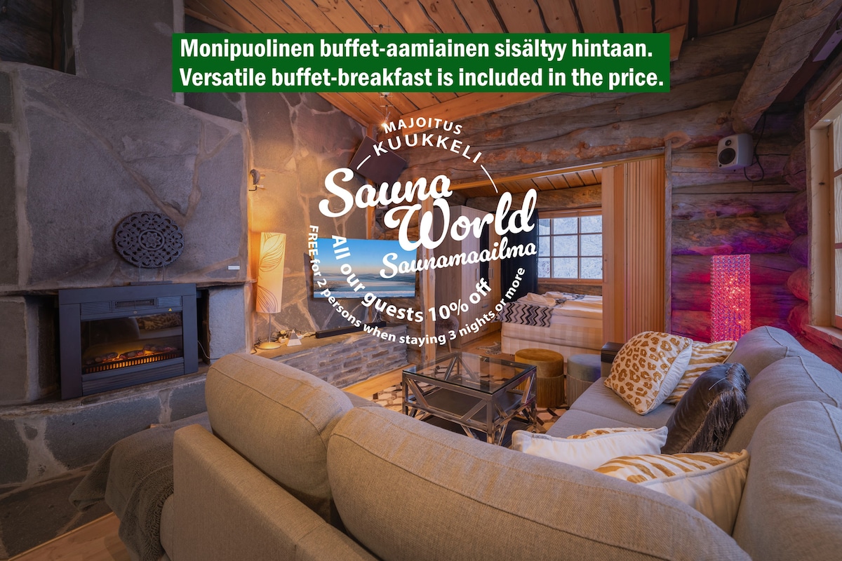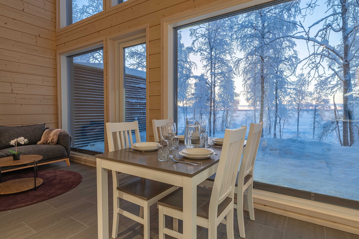 "Leave me here and I'll be just fine". Modern log house with 4 bedrooms 50 mins from Rovaniemi. Support 24/7 during the stay and before. Serene lakeside location at the woods offers a great stage for Auroras. Rental car and self catering recommended. Hot tub,snow shoes, kick sleds and toboggans waiting for the fun! Reindeer farm within 15 minutes distance, huskies 35 and snowmobiles 5 minutes, where the booking can be made for your behalf.