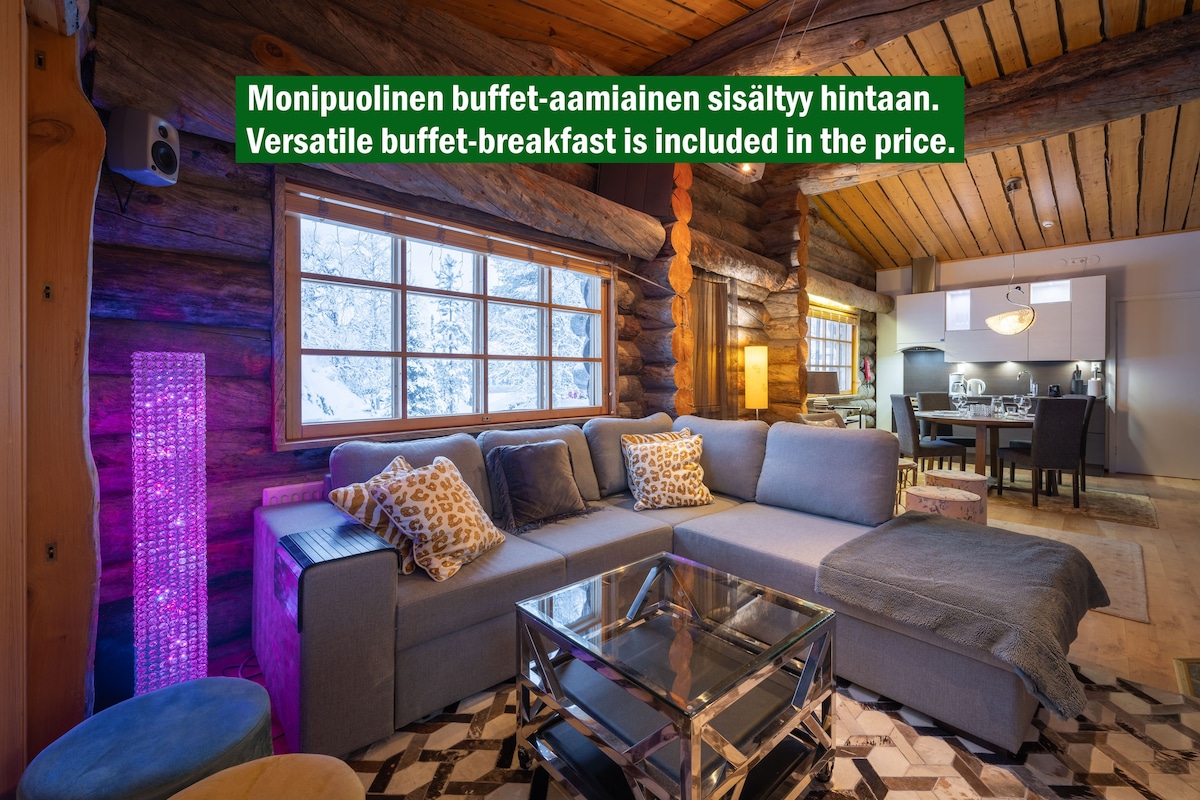 Näyttävä, jykevästä kelohirrestä rakennettu huvila, palveluiden välittömässä läheisyydessä. Sallan kansallispuiston vieressä. Ski keskukseen 500m, hiihtoladulle ja moottorikelkkareitille 100m,ravintolaan 200m,kylpylään 600m,uimarannalle 1.1km, kauppaan 10km. Kelohuvila soveltuu hyvin myös yritysryhmille. Nopea laajakaistayhteys Wifi 4G. Prime ja Netflix käytössä talon tunnuksilla. Grillikota, jossa tilaa 10-15 henkilölle. Sähköauton latausmahdollisuus,11kw. Myös kokki mahdollista saada mökille
