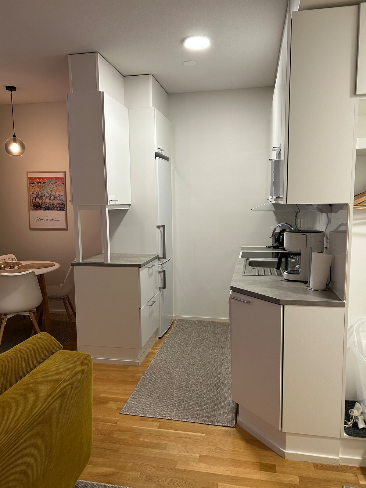 Winter Dream Suite – Luxury and Relaxation Near the City Center This high-quality and spotless apartment accommodates up to four guests and features a private sauna and a cozy balcony. The location is perfect: a peaceful setting ensures restful nights, yet the city center with its services and attractions is just a short walk away. Scandinavian style 2nd floor apartment has a large living room, alcove with queen size bed, sauna and furnished balcony. Fully equipped kitchen.