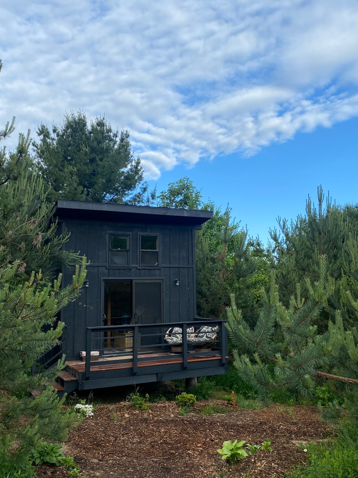 Experience a serene and relaxing getaway in our tiny cabin on our farm. Created with the intention of slowing down (no tv, no wifi and no refrigerator), enjoy wandering the fields relaxing in one of the hammocks, cooking on the outdoor fire pit, sipping coffee on the front deck and generally taking a break from modern life. If you'd like to explore the area, we are nearby popular trails and bike routes, U-pick farms, breweries & restaurants and beaches along Lake Michigan.