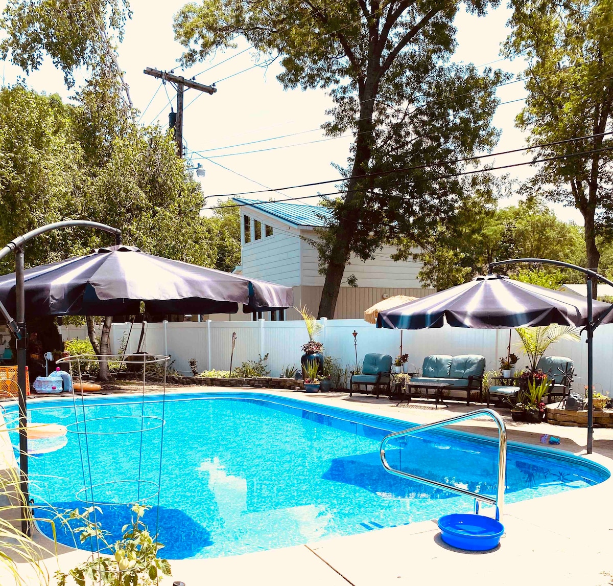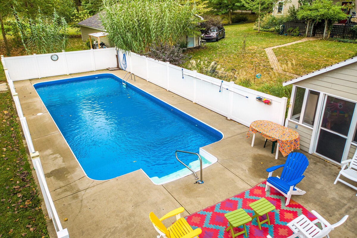 平均评分 4.75 分(满分 5 分),共 71 条评价带泳池的大型家庭住宅-距离密歇根湖13英里!