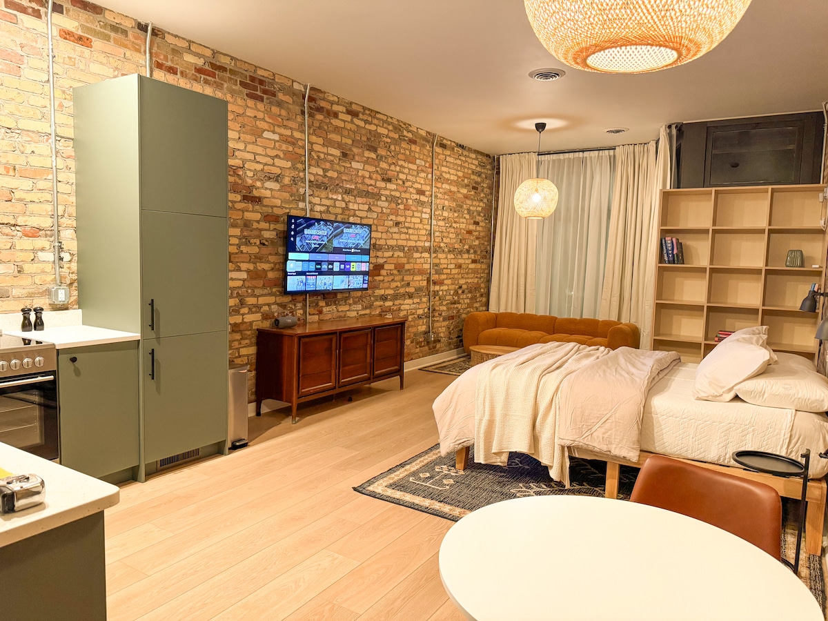 Welcome to Breezy Beach, a bright and cheerful first-floor apartment in the Sunshine House 🌻. With updated amenities, colorful décor, and a prime location near the beach, outlet mall, restaurants, and parks, this spot is perfect for couples, friends, or small families (up to 4 guests). Cook a meal in the fully stocked kitchen 🍳, relax in the comfy queen bed, or enjoy evenings by the outdoor firepit & picnic table. Everything downtown Michigan City has to offer is just a short walk away!