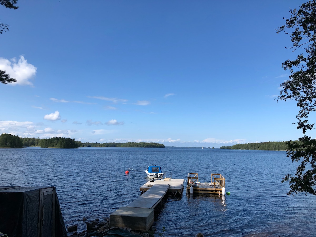 Forget your worries in this spacious and serene house on the lake. Tucked on your own private lakeshore, this charming house boasts exclusive access for fishing and boating—with a rowboat ready for serene paddling. Relax in your private sauna, complete with a separate bathroom and shower. Step onto the spacious deck to take in breathtaking lake views by day and tranquil reflections by night. City of Lappeenranta is only 25 minutes away.