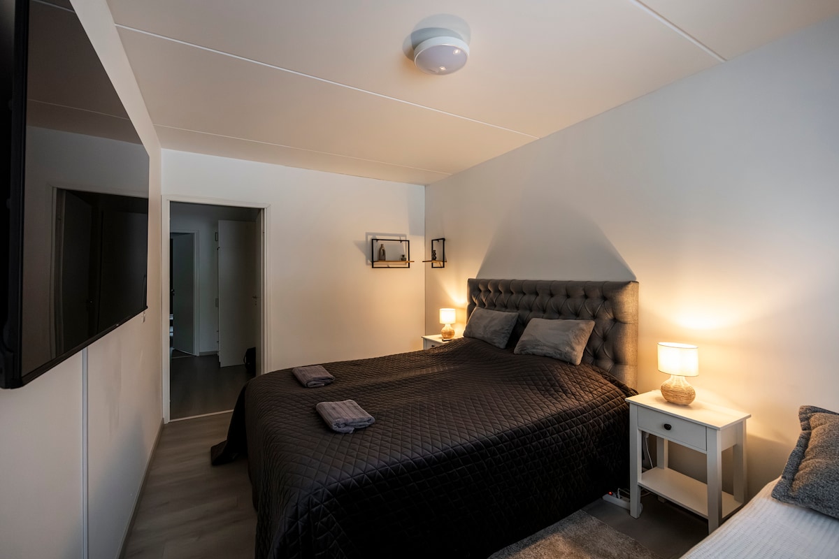 Create lasting memories at this unique and family-friendly retreat. The standard rate includes access to a cozy living room, a practical and well-equipped kitchen, 1 to 3 bedrooms, and a private sauna. The main bedroom features either a 180 cm double bed or two 90 cm single beds, along with a dedicated workspace for remote work. Additional bedrooms offer 1 to 2 beds, depending on your needs. You'll also have access to an electric sauna, as well as laundry and drying facilities.