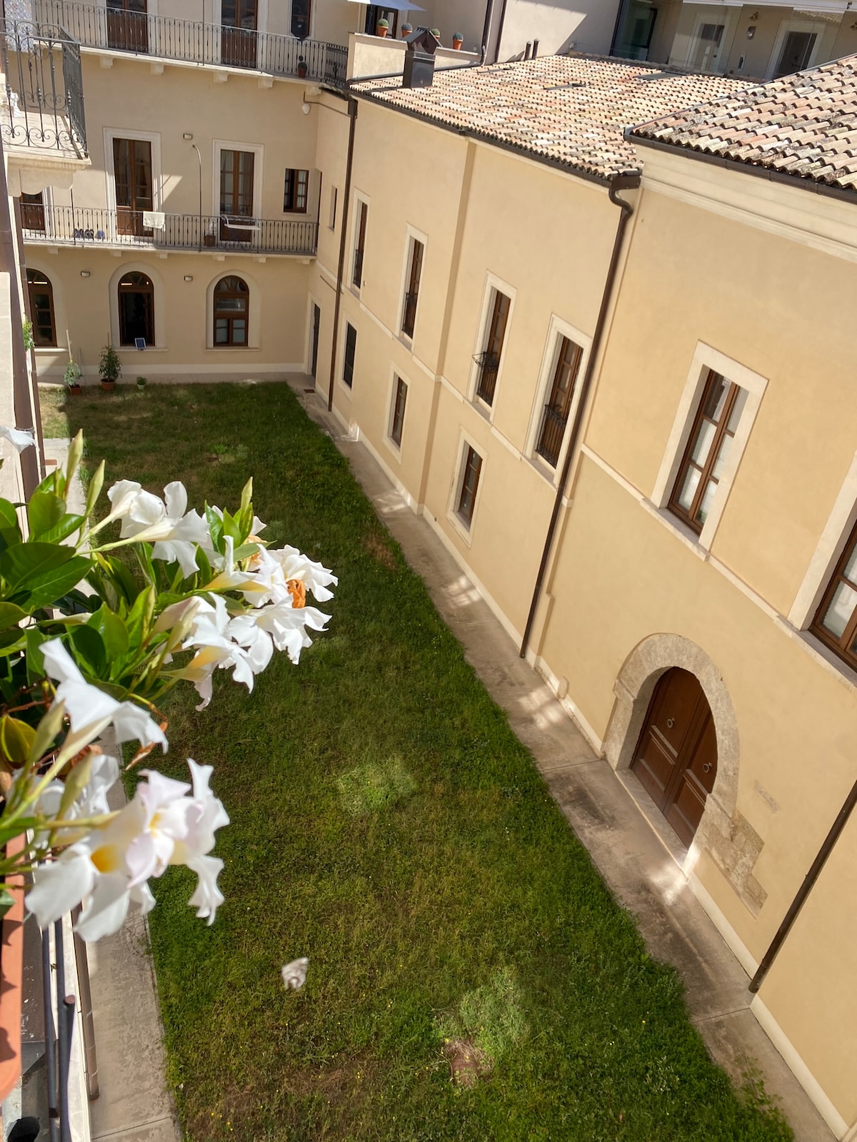 Appartamento luminoso nel Quarto di San Pietro, nel settecentesco palazzo Vivio-Porcinari, in una zona tranquilla del centro storico, i locali della movida a due minuti a piedi, vicini ma non troppo. Vicino alle sedi universitarie del centro, al MAXXI, al Forte Spagnolo e alla centrale via Roma. Ideale per chi desideri il comfort di casa anche in viaggio. È dotato di lavasciuga, ferro da stiro, lavastoviglie, cucina con colazione inclusa.