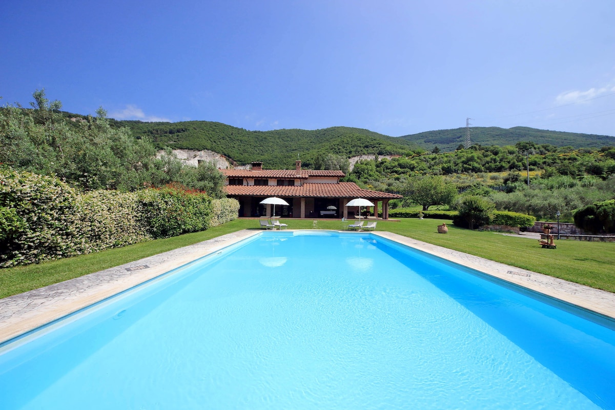 Our villa is close to Tagliacozzo, a renaissance town an hour from Rome. Surrounded by woods this 18th century villa is divided into 4 homes and has large grounds and a private pool providing plenty of space for children to play. The available home has its own entrance. The living room and fully equipped kitchen (including dishwasher) are on the ground floor and the 3 bedrooms are on the 1st floor. There is a modern bathroom on each floor. You can use the washing machine in the common area.