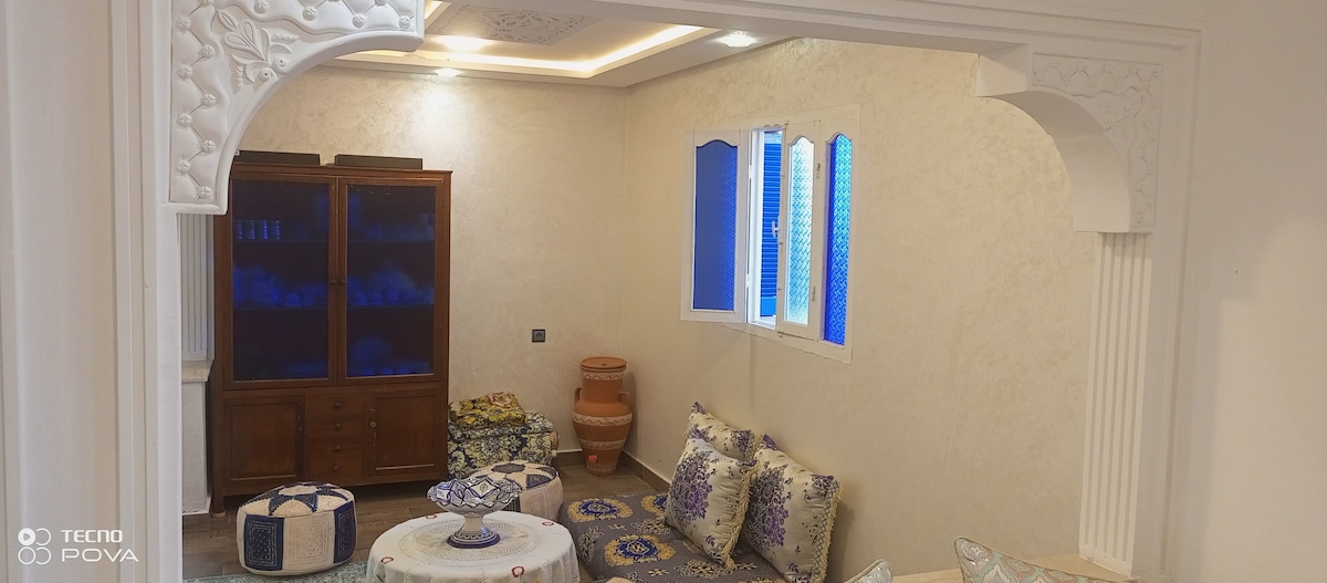 Welcome to Dar Zêlis, your peaceful retreat in the secure Beralmar residence in Assilah. Modern comfort meets Moroccan charm for a stay filled with relaxation, sunshine, and authenticity. Located on the ground floor, the apartment features two private terraces overlooking the gardens. The center of Assilah is just 3.5 km away (6 min by car), and a city taxi can pick you up directly at the residence for easy round-trips.