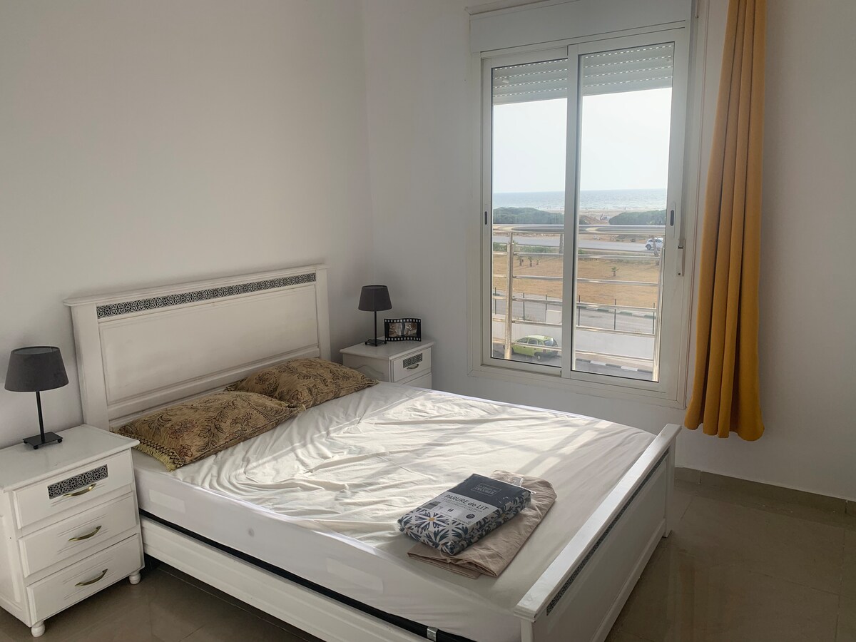 Profitez d'une escapade paisible dans cet appartement moderne à Asilah, avec une superbe vue sur la mer et la piscine. Détendez-vous sur la terrasse privée, restez au frais grâce à la climatisation et connecté avec le Wi-Fi rapide. Idéal pour les couples et les familles, même avec enfants ou bébés—à quelques minutes de la plage et du centre-ville.