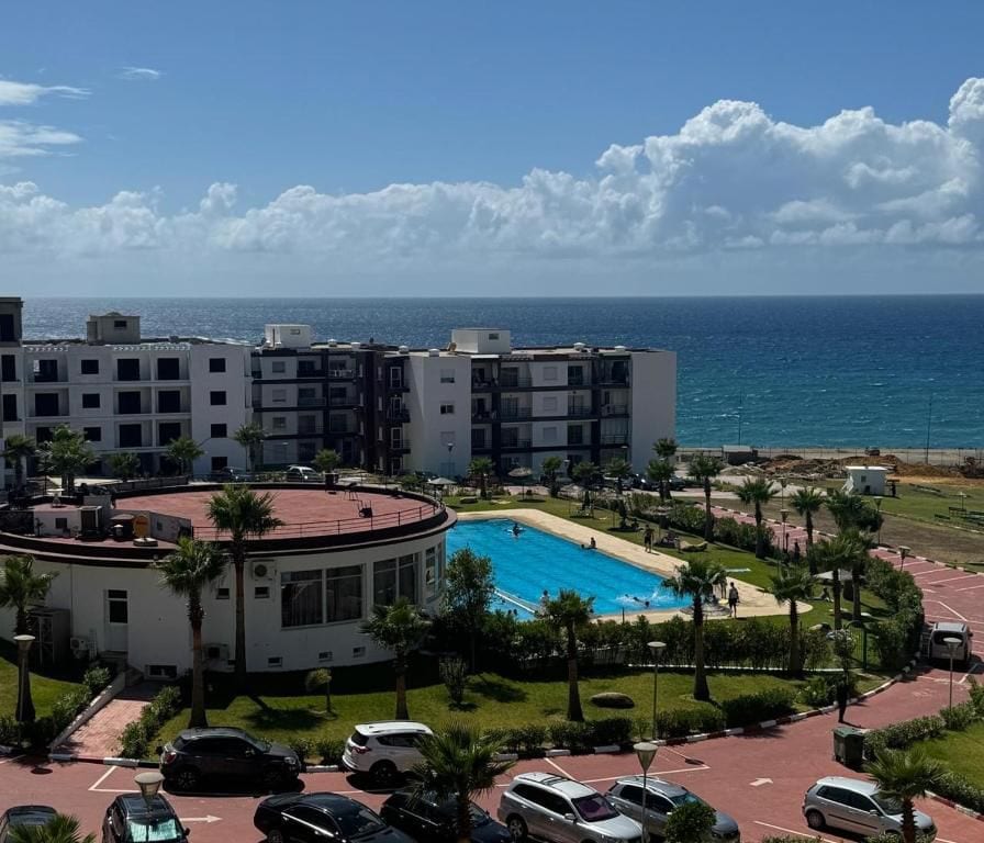 un appartement de haut standing avec une vue panoramique sur l’océanet et sûre golf. situé au complexe touristique "Asilah marina Golf" de 120m², meublé avec grande terrasse(solarium de 90m) et 4 balcons dans deux vue donnant sur mer , et deux vue donnant sûre golf.