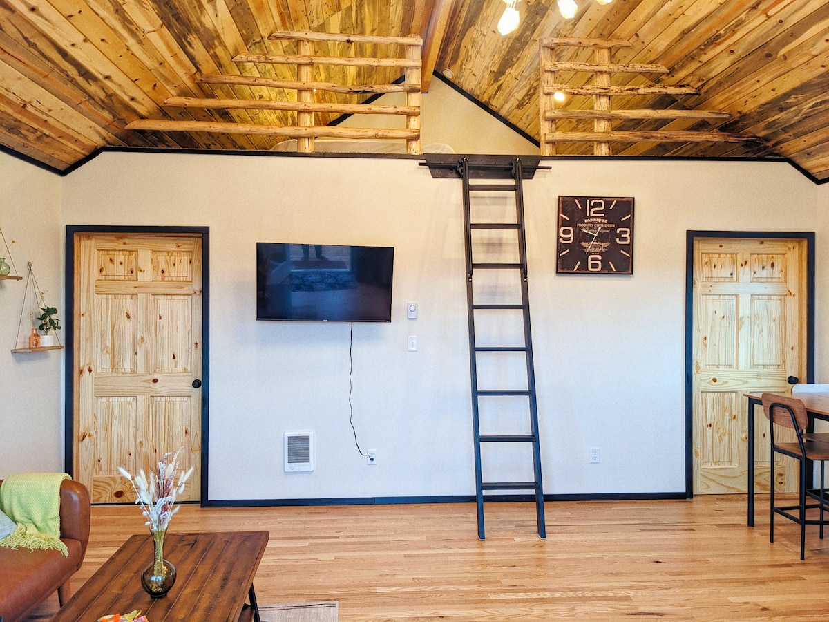 Escape to Plunatic Land's charming tiny home in Laramie for a peaceful getaway. Enjoy breathtaking views and a serene environment on a horse property just minutes from University of Wyoming. Our newly built tiny house offers a clean and comfortable stay with brand new furnishings and kitchen equipment. It's perfect for couples or families with one bedroom and a unique loft bedroom. Wake up to horses munching on hay and deer grazing the fields. Come experience this cozy hideaway!