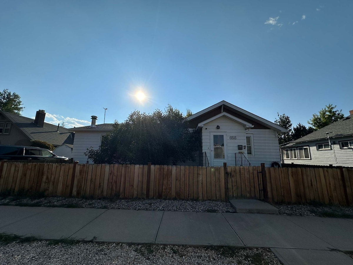 Enjoy your stay in this 1940s clean, cozy, charming, 2br, 800 sq ft cafe styled downstairs, private entrance location. One block from UW, Einstein Bagels. 4 min from downtown Laramie 7 min from a movie theatre & more dining. Smart TV with Netflix and Hulu accounts. Games available. NOTE: The living room heating unit becomes HOT when in use and creates an environment not for crawling age to 3 to 4 yrs. NO SMOKING NO PETS on property - we do have a well behaved Aussie Doodle upstairs.