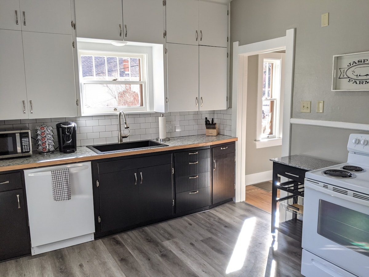 Cleaning fee for short stays is just $15. This garden-level basement apartment in a charming historic home has been recently renovated and is ready for your stay. It's sunny, clean and comfortable, and everything is new. Enjoy an idyllic neighborhood near downtown Laramie that's within walking distance of dining, shopping, breweries, night life, historic attractions, parks, two farmers' markets and the University of Wyoming.