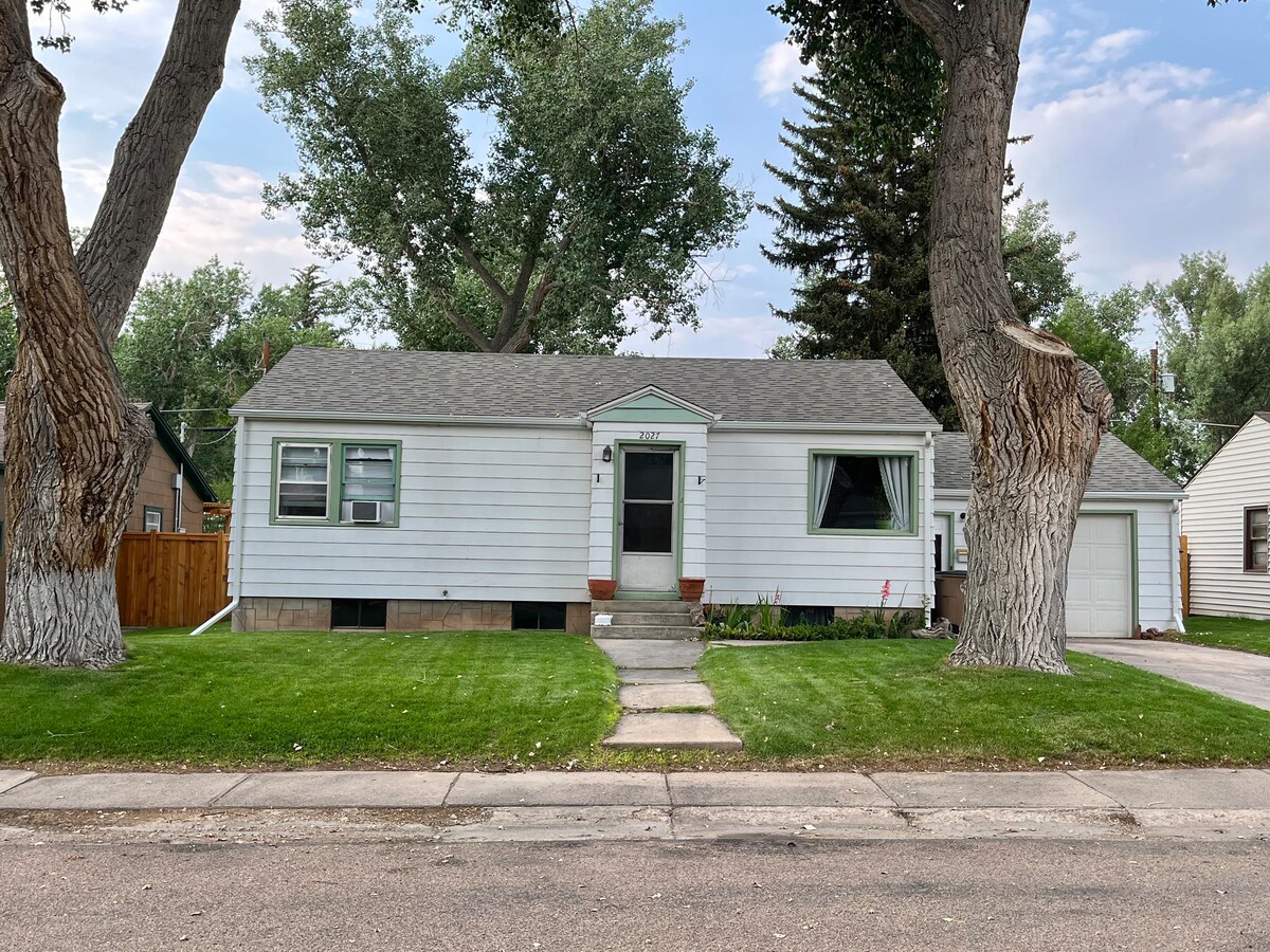 Enjoy your stay in this 1940s clean, cozy, charming, 2br, 800 sq ft cafe styled downstairs, private entrance location. One block from UW, Einstein Bagels. 4 min from downtown Laramie 7 min from a movie theatre & more dining. Smart TV with Netflix and Hulu accounts. Games available. NOTE: The living room heating unit becomes HOT when in use and creates an environment not for crawling age to 3 to 4 yrs. NO SMOKING NO PETS on property - we do have a well behaved Aussie Doodle upstairs.