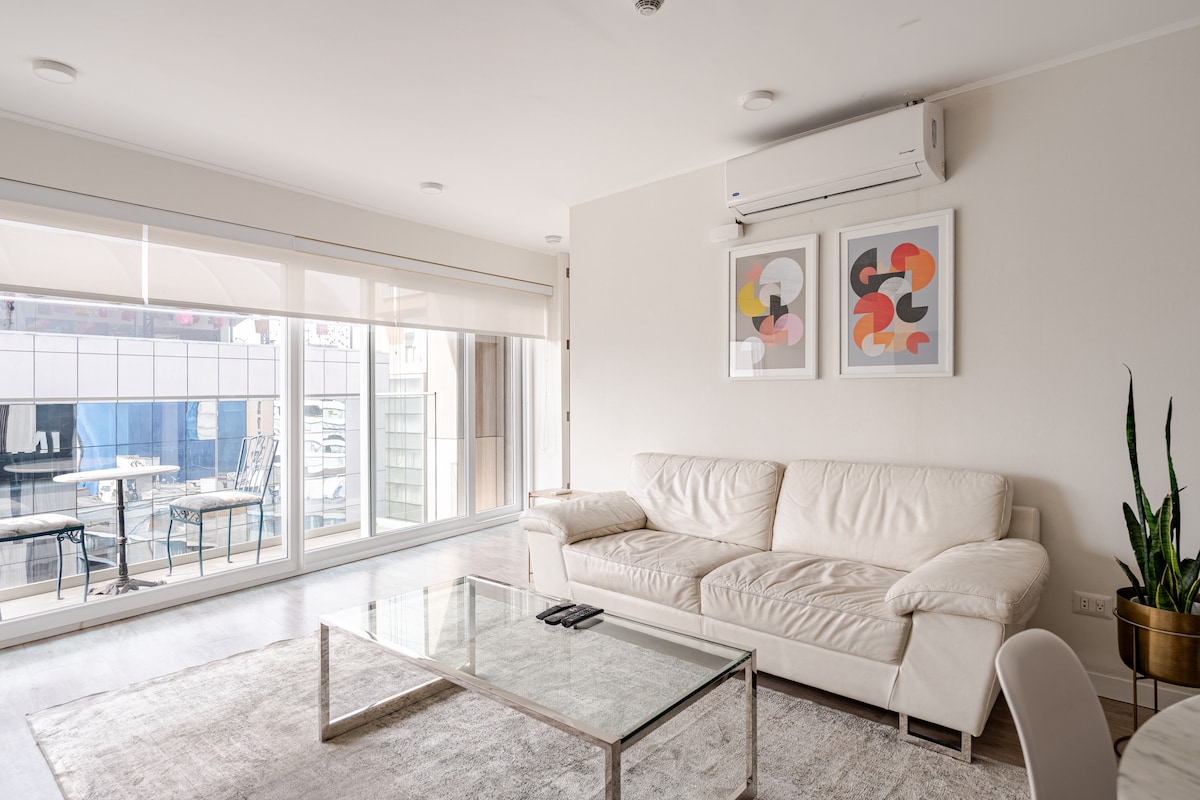米拉弗洛雷斯市中心现代2卧公寓,配备空调