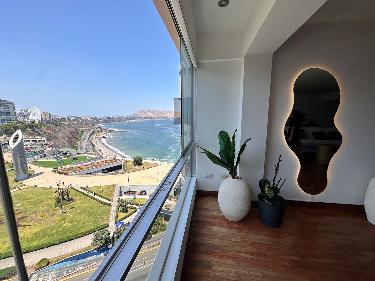 New apartment located 1 minute from Larcomar mall overlooking the Pacific Ocean where you will find restaurants and entertainment places. Only 10 minutes walk to Kennedy Park in Miraflores. Perfect for couples and business travelers. Nuevo apartamento a 1 minuto del C.C Larcomar con vista al Océano Pacífico,donde encontrarás restaurantes y lugares de entretenimiento. A solo 10 minutos caminando al Parque Kennedy. Perfecto para parejas y viajeros de negocios.
