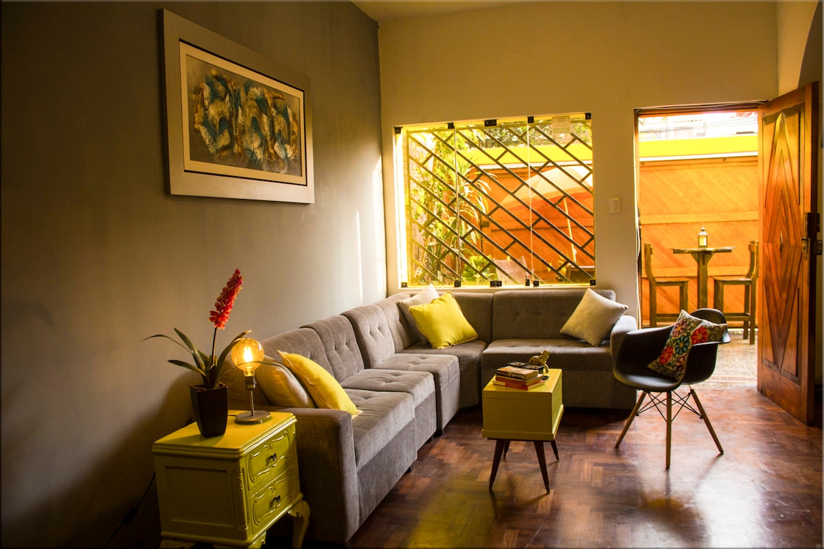 ★ "It has everything you need to spend an incredible stay." Located in Barranco, the most important downtown, cultural, romantic and bohemian district of Lima; discover it by walking. • Tourism & Business • 3rd floor of a safe and family condominium. • Private balcony • Rain shower • Fully equipped Kitchen • Onsite Washer + Dryer • 24h Concierge & Vigilance • 5min to Malecón / Miraflores • 10min to Business area • 20min to Historical Center • Close to bus, shops, restaurants and entertainment