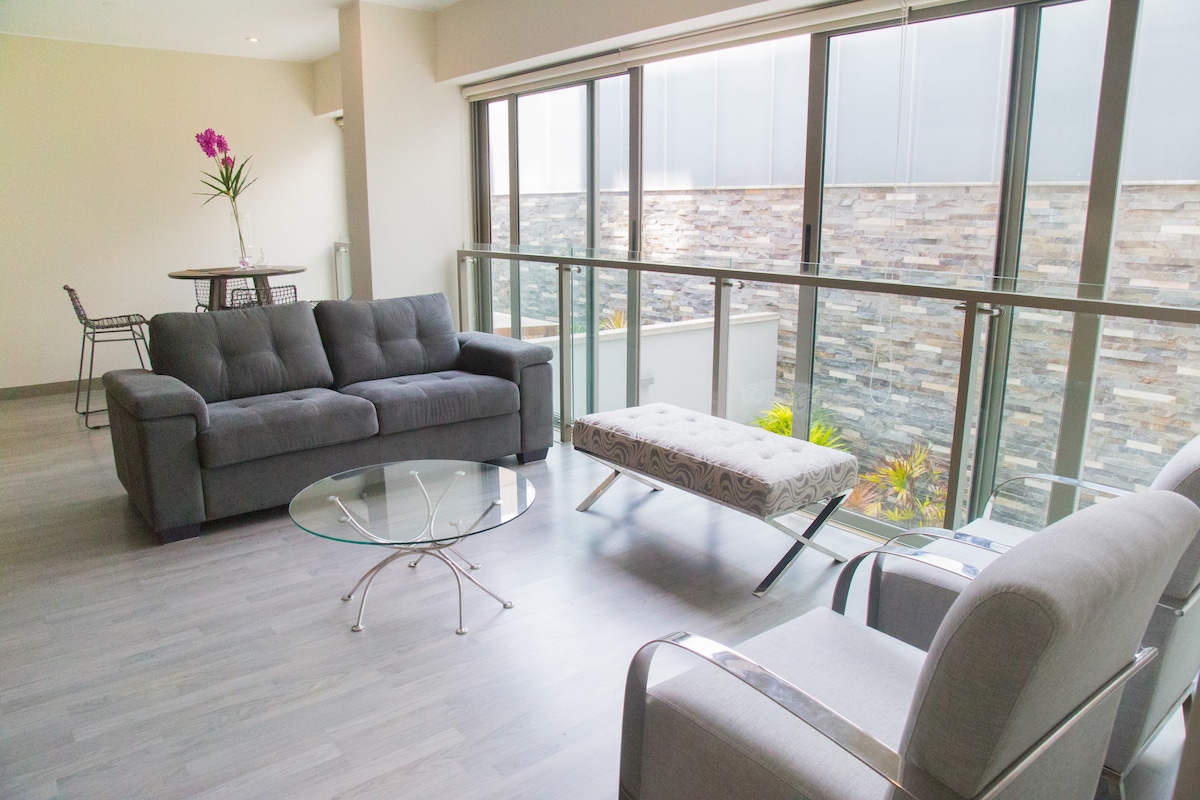 100% beautifully designed by Balance Diseño, located in THE BEST area of Miraflores, Kennedy Park area where you have EVERYTHING by walking distance, Larcomar, best restaurants, super markets, traditional market, handcraft markets, 24hrs groceries and 24hrs food stops! This location also has swimming pool, functional gym, 1 free parking inside the building and excellent connections to the public transport system.