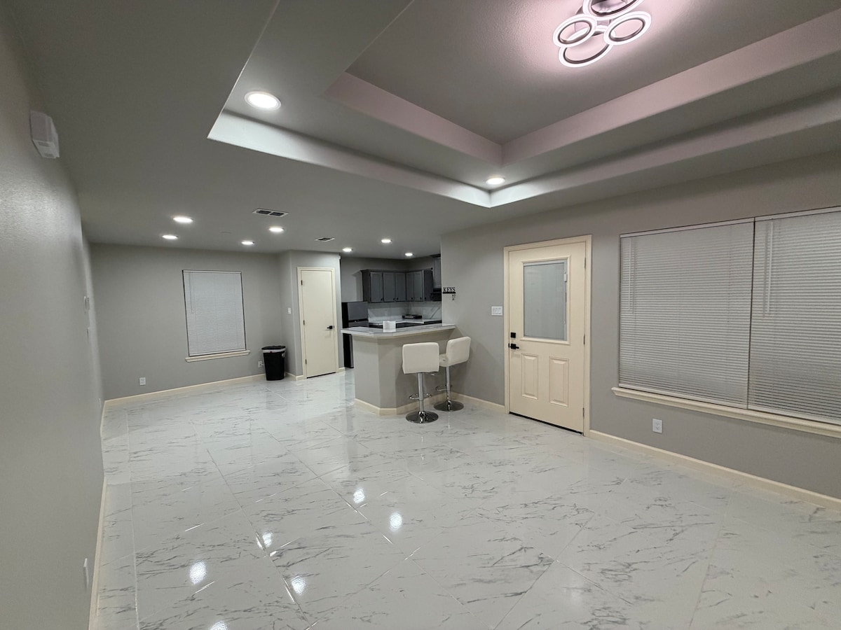 New studio located Nort East area of Laredo, where you can relax in a comfortable memory foam bed, with WiFi, HD TV, microwave, refrigerator, electric stove, guest parking on the driveway. Near shopping centers, Doctors Hospital, Academy, Burlington, Ross, Walmart, HEB plus. Also close to fast food restaurants like Whataburger, Freddy's, Chick-fil-A, Starbucks, Arby's, Cheddars, and more. Cinema Alamo, Pla-Mor family Entertainment. Close to the airport, and TAMIU University. Smoke free.