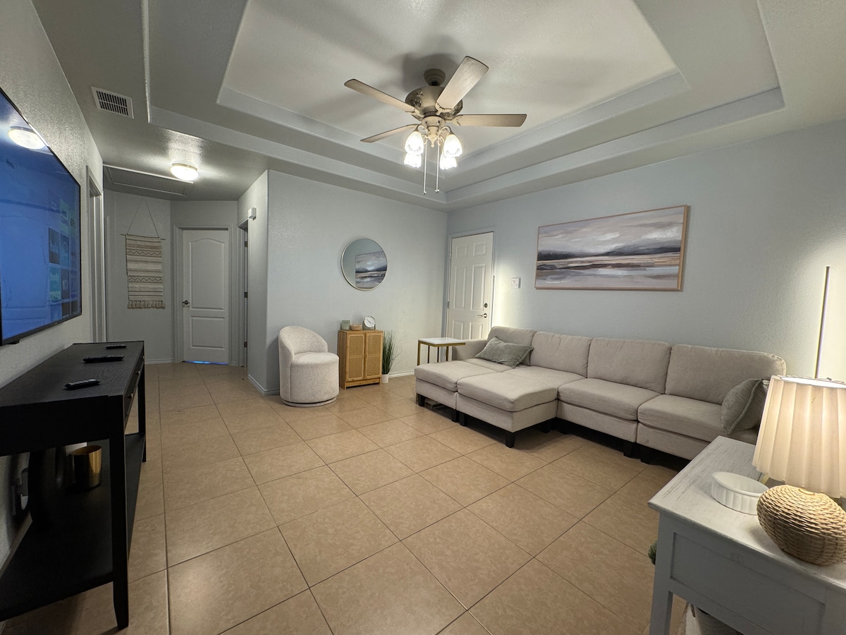 Discover your modern 3-bedroom townhome in the heart of North Laredo! Perfect for families & business travelers, this stylish retreat features a private office with fast Wi-Fi, a fully equipped kitchen, a 75” smart TV, and a patio with a BBQ grill. Enjoy the convenience of being minutes from top dining, shopping, and gyms. Your perfect home away from home awaits!