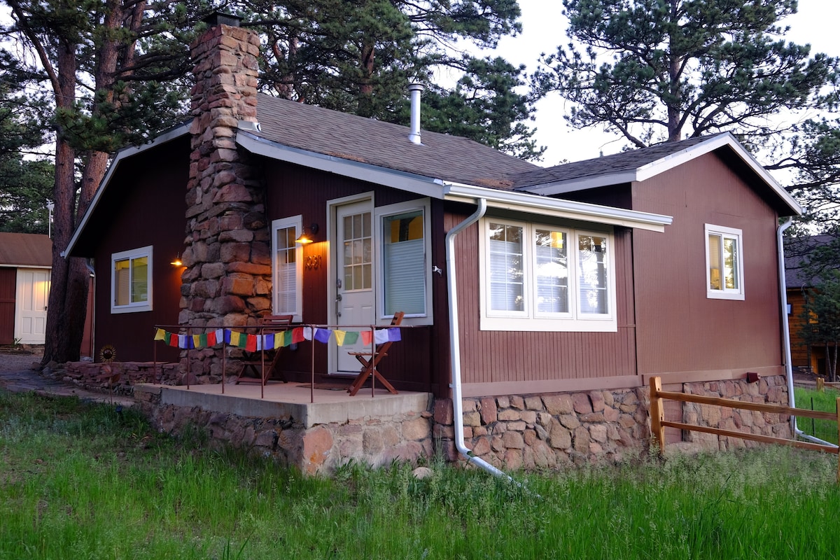 Nestled in the alpine forest, on the banks of the N. Fork of the Cache la Poudre River in Red Feather Lakes, CO~our guests experience a total immersion in nature. Our unique cheerfully-decorated cabin sits 75 ft from the river, with covered deck, & showcases stunning nature views of the N. Fork of the Cache la Poudre River, >200 ft of river front property plus a Nature Path by the River for hiking & private access to Forest!