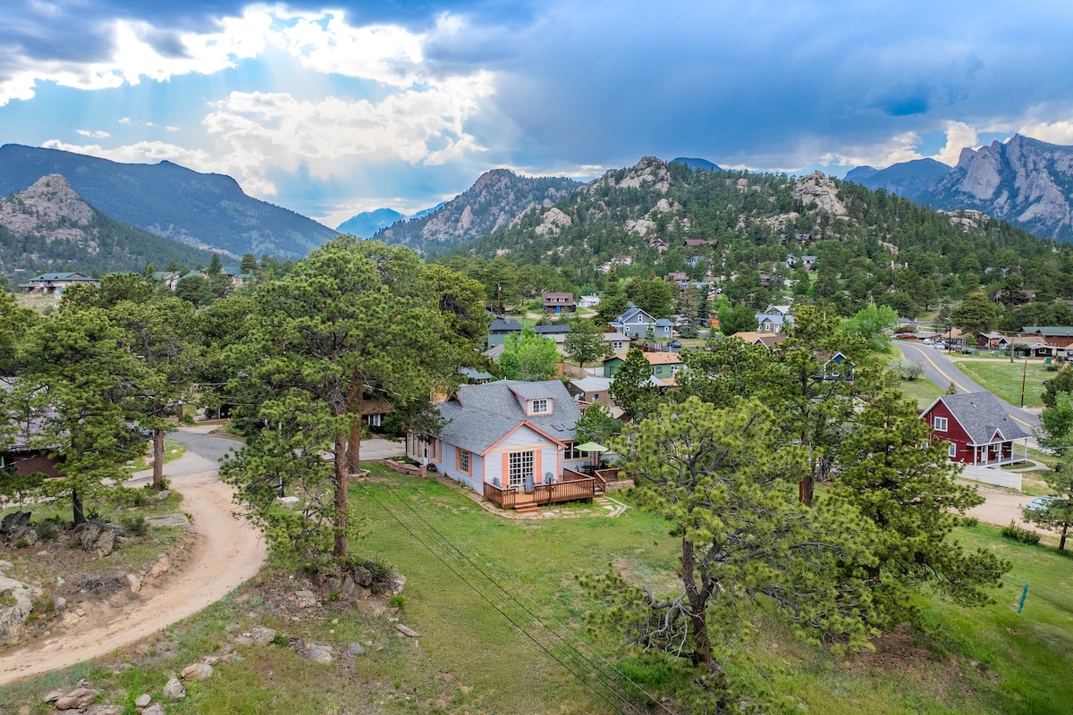 Soothe your soul in a hot tub (seats 2 adults comfortably) above downtown while staring into Rocky Mountain National Park (STR#3126)! You'll love my historic cabin, built in the 1800s but modernized for your comfort. Cozy 540 square feet provide great views, a full kitchen & bathroom, electric fireplace, inviting warm bedroom, and a deck overlooking Lumpy Ridge. + Walk to downtown and the Stanley Hotel + 8 minute drive to the park A perfect base for up to 4 people for a mountain getaway!