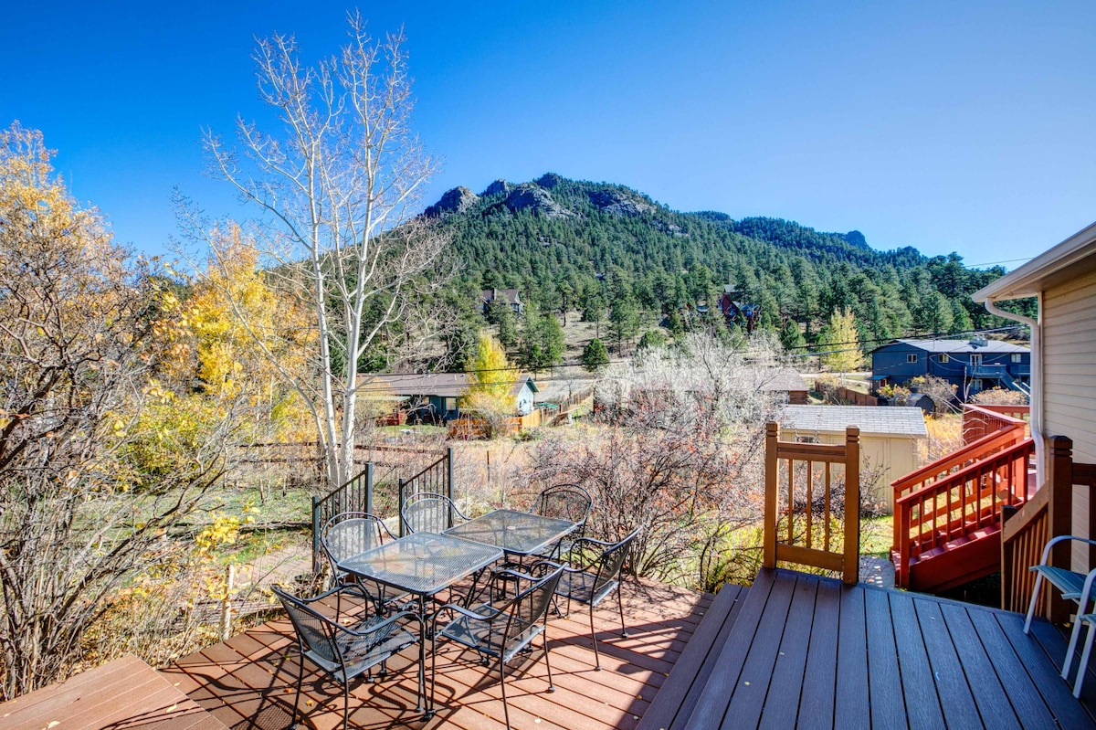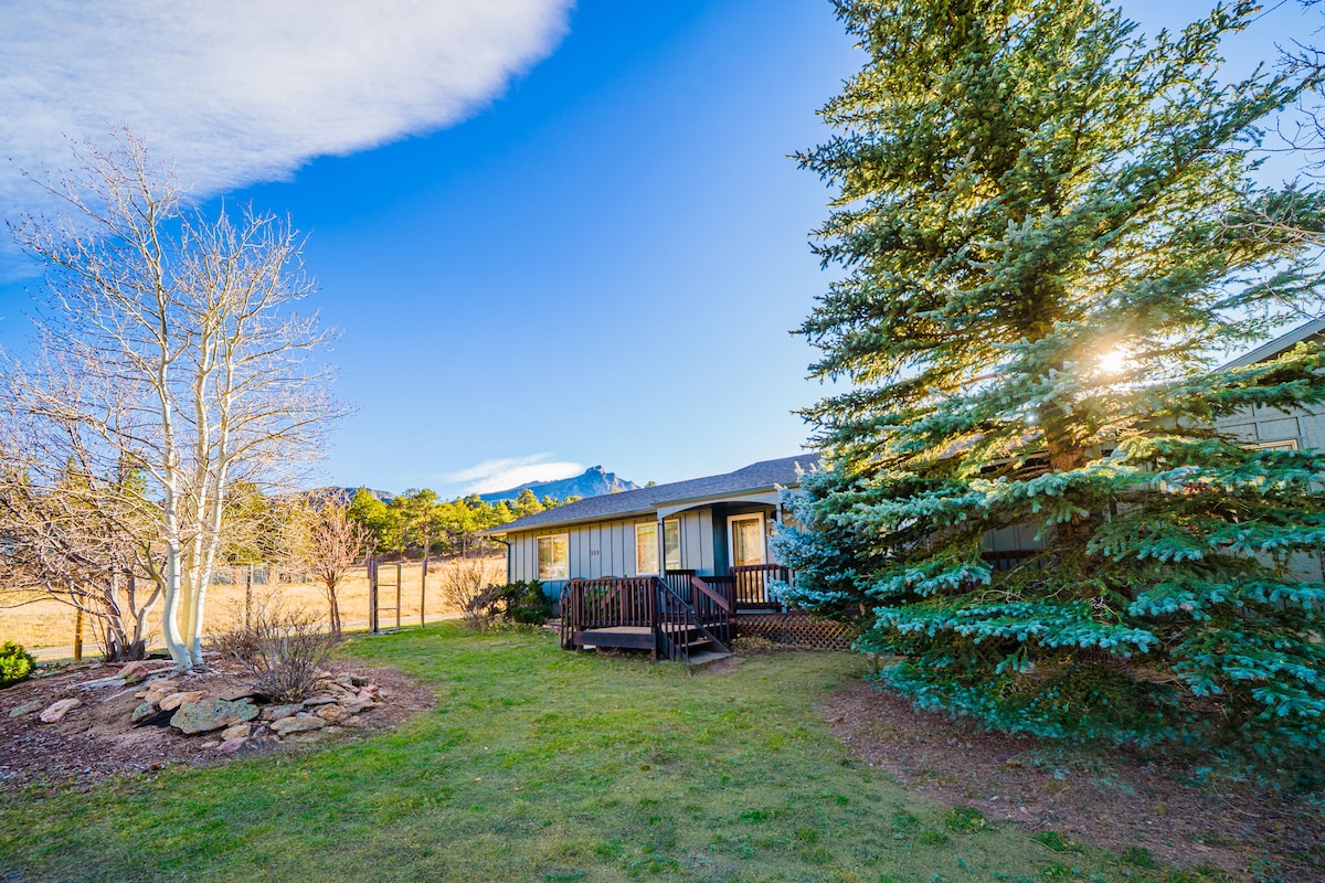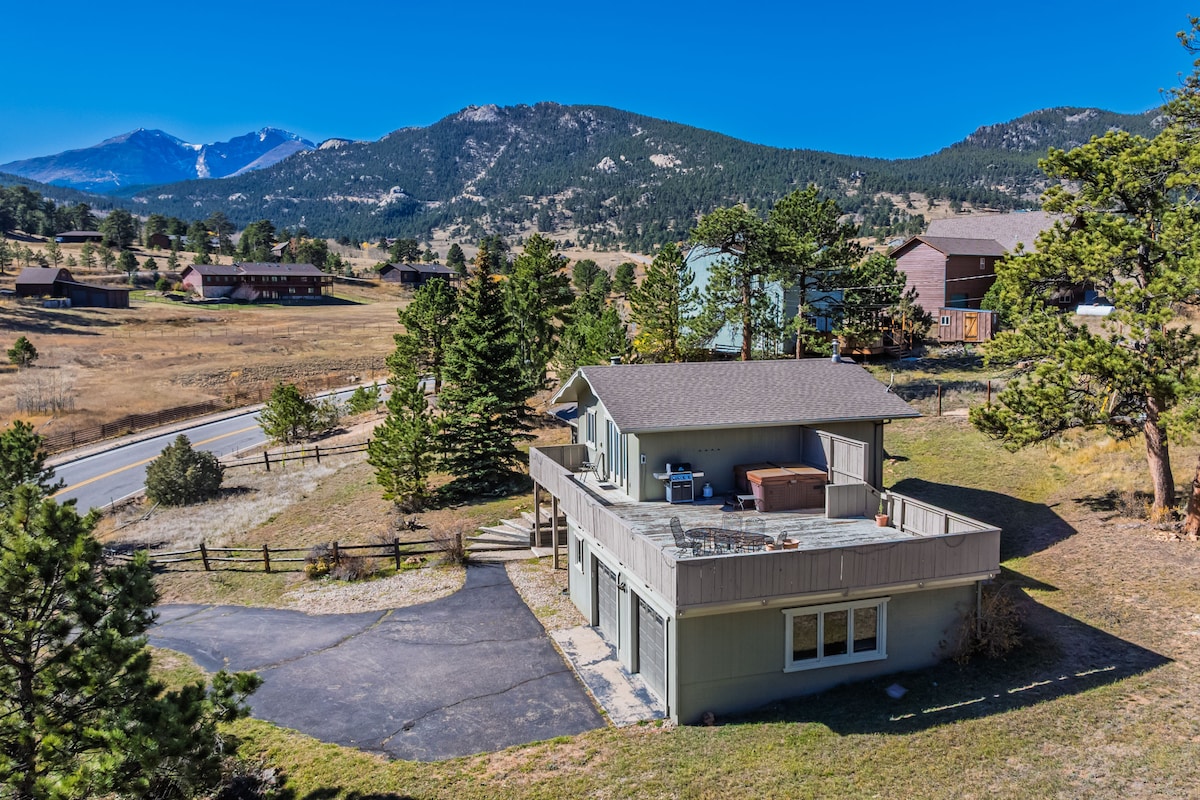 UNDER NEW MANAGEMENT, DEC 2025 (Permit 3525). A perfect mountain home with a hot tub under the stars and a cozy fireplace. Great for friends and families near downtown Estes Park. Enjoy big windows, open living, and snow-capped peaks. “This place was absolutely perfect for our family vacation.” — Chris. Quiet Carriage Hills location close to Rocky Mountain National Park. - Hot tub with views - Spacious one-level layout - Gas fireplace - Large kitchen Peaceful 3BR ranch on 1.17 acres