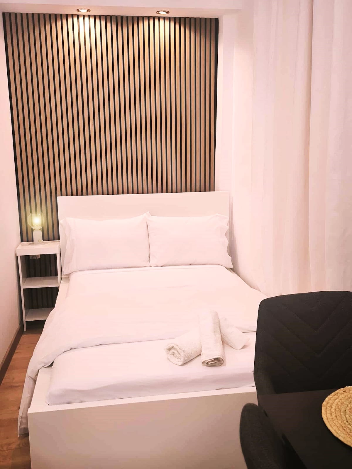 A stylish, fully renovated studio in the city, ideal for couples and business travelers The open-plan layout features a modern living and sleeping area, separated by an elegant wooden design divider that offers privacy and a bright, spacious feel. Fully equipped for a comfortable stay, with easy access torestaurants, cafés An ideal choice for guests seeking comfort, style and convenience in a central location ✅️Wi-Fi ✅️Smart TV ✅️Netflix ✅️Natural gas ✅️Air conditioning ✅️Private outdoor space