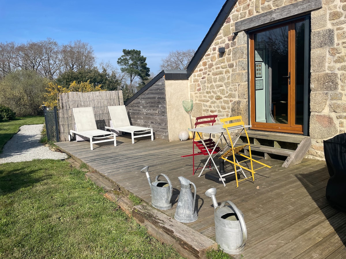 Charming penty breton in the heart of the Auray country welcomes you for relaxation for two or solo. Independent duplex out of sight with a wooden terrace, barbecue, enclosed garden. All shops, restaurants and services on foot. The most beautiful beaches of Morbihan, the discovery of the historical and natural heritage, and the Breton flavors on your doorstep.